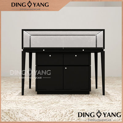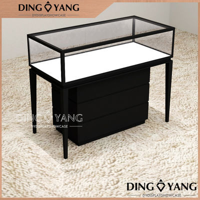 In this streamline jewelry showcase, fully use the black colors. which looks very luxury. And Combinate with the white led lights. All of the stainless steel materials are finished with Fingerprint Prevention Processing. Large bottom storage include 2 drawers and 1 big cabinets, fully with locks. Stable structure and large display capacity is a nice choose while you need to custom the glass jewelry showcase for your retail shop or the showroom.