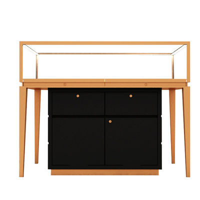 The now size of this jewellery showcase for sale/ display showcase for jewellery is 1200X550X950MM, The size can be customized that follow your shop floor plan . Use the brush gold match the matte black in this jewellery showcase,in fact ,can be custom made the different colors as you need. Also included custom your company logo. The mainly merails in this modern jewellery showcase are MDF/304# stainless steel / 8MM~10MM clear tempered glass/led strip lights. The led strip lights are installed on the top of this glass jewellery showcase,output is 12V. We have already installed the transformers of each jewellery showcase. Bottom enclosed the large storage with lockable. Stainless steel covered the kick which can be protect the jewellery showcase. The nice jewellery showcase display is suitable for the retail shop/showroom/exhibition. While your company attend the jewellery show, the bottom storage can be leaved if you do not need.