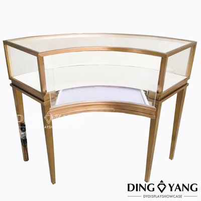 The current size of this Curve Jewelry Display Cases is 1350X550X960MM, The diameter of the whole circular is about 2100~2300MM, it will include 4 pcs of glass display cases for jewelry.For all the stainless steel parts, they are finished with Anti-Oxidation And Rust Prevention.Use the use highly transparent tempered glass with high-end led light,which look luxury. Beside custom with your company logo in front of the metal glass jewelry display case can make your jewelry more popular